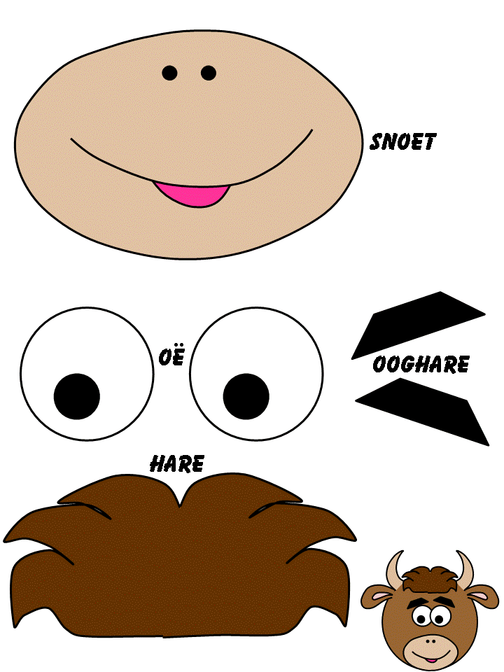 Plak die oogies vas op die gesiggie net onder die hare. (Of sny gaatjies uit in plaas daarvan om die oë op te plak vir ‘n masker)